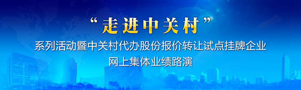 为推动中关村国家自主创新示范区代办系统挂牌企业做好投资者关系管理工作,加强与广大投资者的沟通联系,切实提高园区挂牌企业透明度和公司治理水平,向市场集中展示中关村国家自主创新示范区挂牌企业规范、诚信、创新的整体风貌。中关村管委会联合北京市金融工作局,借助投资者关系互动平台,举办“走进中关村”系列活动暨中关村代办股份报价转让试点挂牌企业网上集体业绩路演活动,本次活动由深圳证券信息有限公司和北京中关村科技创业金融服务集团有限公司承办。代办挂牌企业与投资者通过网络在线交流,就2010年年报、公司治理、发展战略、经营状况、融资计划、股权激励、可持续发展等投资者所关心的问题,通过互动平台与投资者进行“一对多”形式的沟通。
