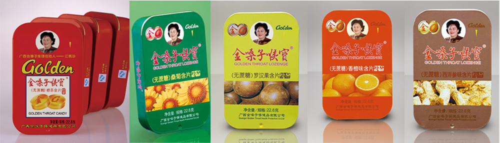 我们的无糖系列金嗓子喉宝产品包括五款产品,分别为经典味、香橙、罗汉果、桑菊及西洋参味。